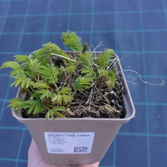 Sazenice zasazená v hranatém květináči o velikosti 9×9×9,5 cm.